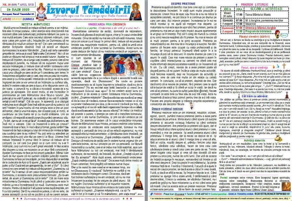 A apărut numărul 30 al publicației parohiale „Izvorul Tămăduirii” cu programul liturgic.
