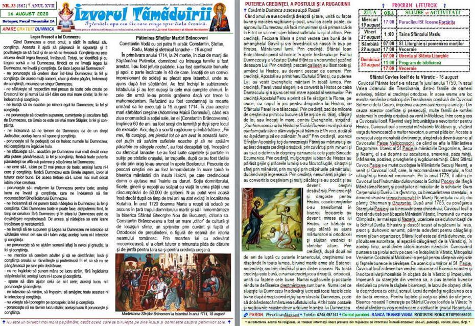 A apărut numărul 33 al publicației parohiale „Izvorul Tămăduirii” cu programul liturgic.